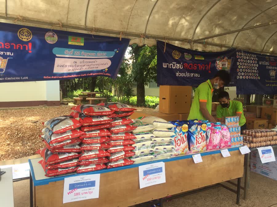 สำหรับการจัดกิจกรรมในครั้งนี้ ได้มีการนำสินค้าอุปโภค-บริโภค ที่จำเป็นต่อการครองชีพ มาจำหน่ายในราคาที่ถูกกว่าท้องตลาด ถึงร้อยละ 20-41 เช่น น้ำมันพืชขวดละ 30 บาท, น้ำตาลทราย กิโลกรัมละ 20 บาท, ปลากระป๋อง กระป๋องละ 10 บาท, น้ำปลาตราทิพรส ขวดละ 18 บาท, บะหมี่กึ่งสำเร็จรูป ซองละ 4.50 บาท, ข้าวหอมมะลิ 5 กิโลกรัม 185 บาท และข้าวสารเหนียว 5 กิโลกรัม 150 บาท