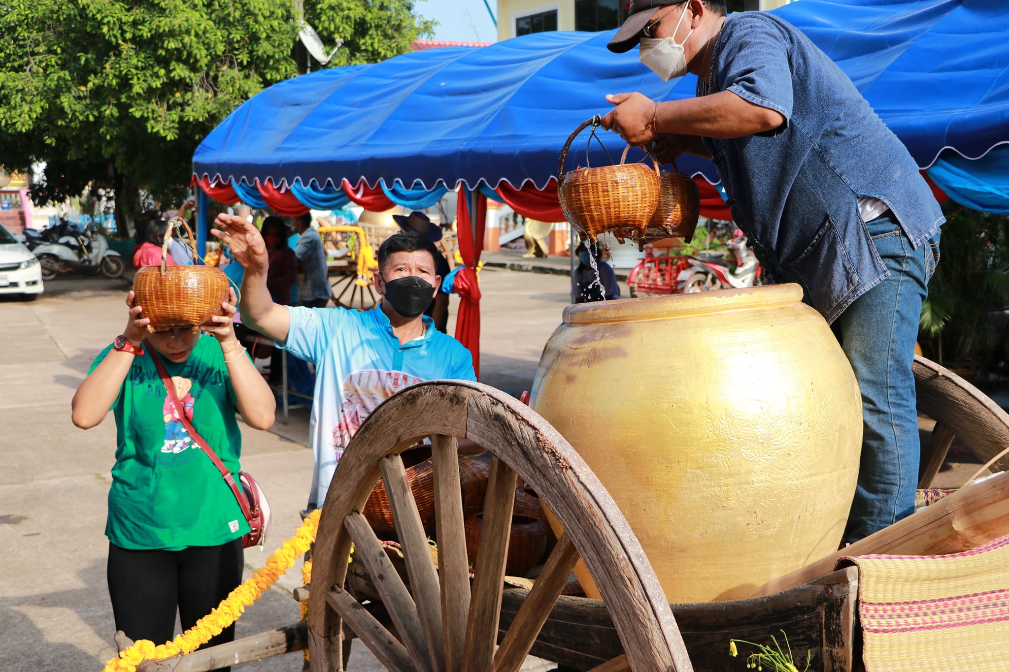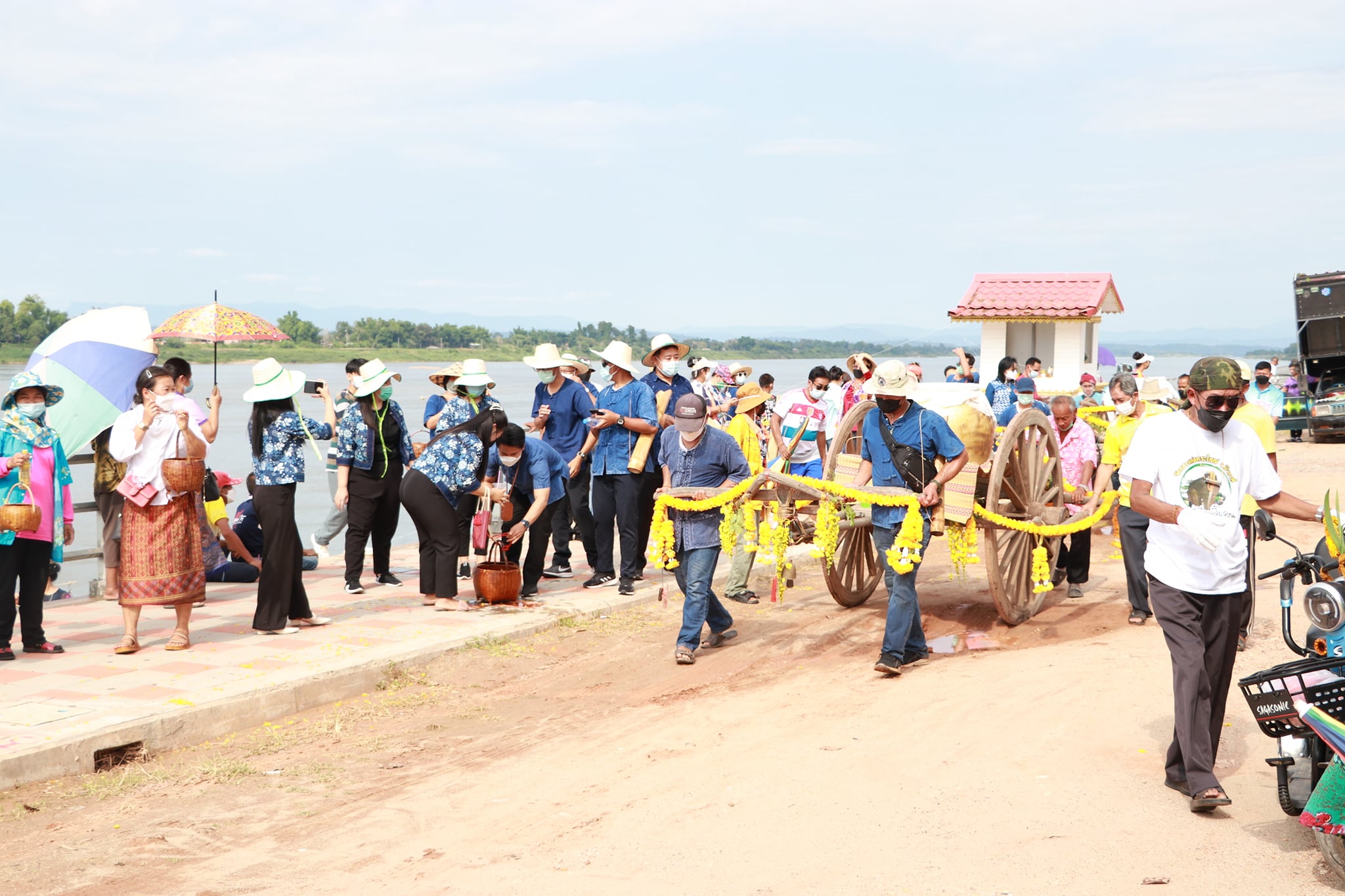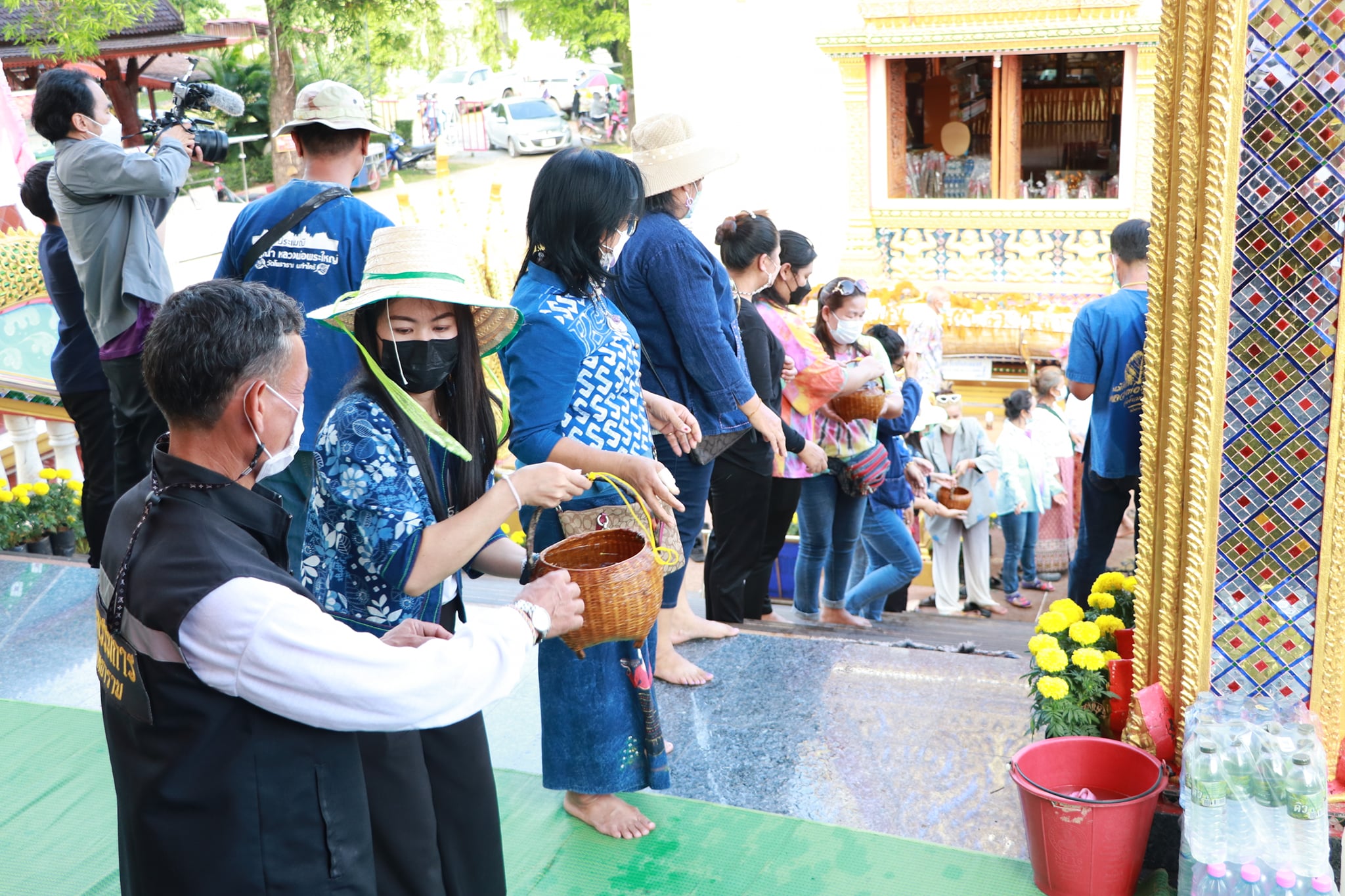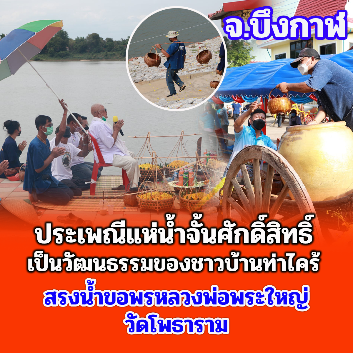 วันนี้ (19 เมษายน 65) มีพิธีรำบวงสรวงสักการะสิ่งศักดิ์สิทธิ์ และพิธีพราหมณ์สวดขอพรให้ชาวบึงกาฬ ตามด้วยขบวนแห่น้ำจั้นที่มีชาวบ้าน ผู้ใหญ่ รวมถึงเด็กได้ช่วยกันหาบน้ำจั้น เพื่อมาสรงน้ำหลวงพ่อพระใหญ่ หรือที่วัดโพธาราม อันประดิษฐานพระคู่บ้านคู่เมืองจังหวัดบึงกาฬ บ้านท่าไคร้ อำเภอเมืองบึงกาฬ จังหวัดบึงกาฬ อันเป็นศูนย์รวมจิตใจของพุทธศาสนิกชนทั้งชาวไทยและชาวลาว เป็นพระพุทธรูปที่มีความศักดิ์สิทธิ์ เพื่อคารวะขอจัดงานสรงน้ำหลวงพ่อพระใหญ่ในวันเช้าวันถัดไป ซึ่งภายในวัดมีนักท่องเที่ยวทั้งชาวไทยและชาติต่างให้ความสนใจ ทำให้เกิดการกระตุ้นเศรษฐกิจภายในชุมชน และสร้างความประทับใจสู่สายตาชาวโลก เป็นการส่งเสริมแหล่งท่องเที่ยวให้จังหวัดบึงกาฬต่อไป