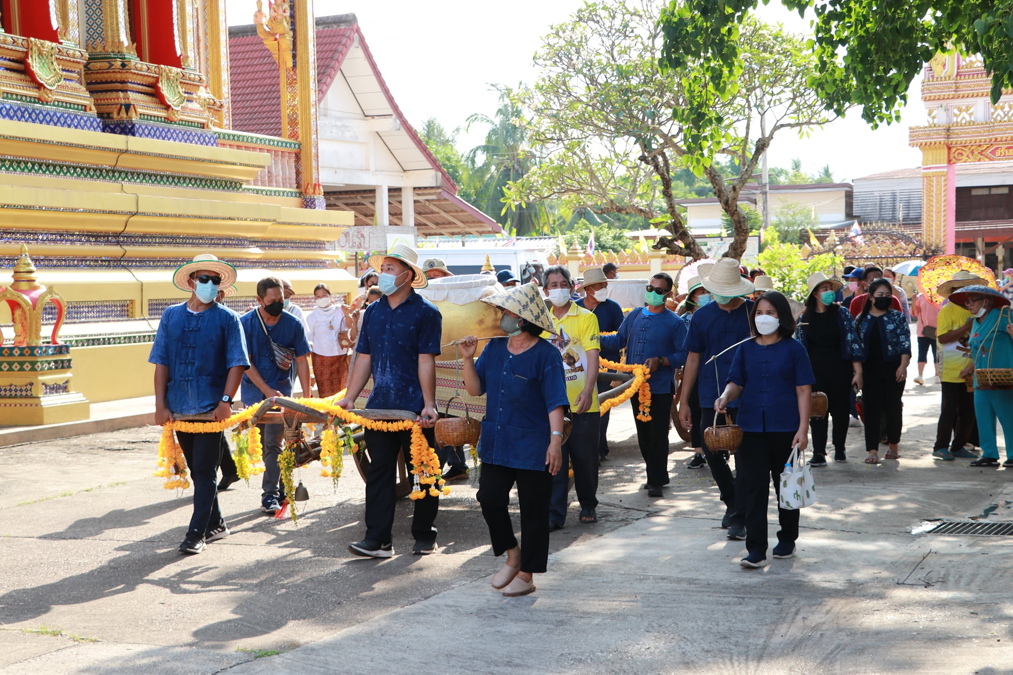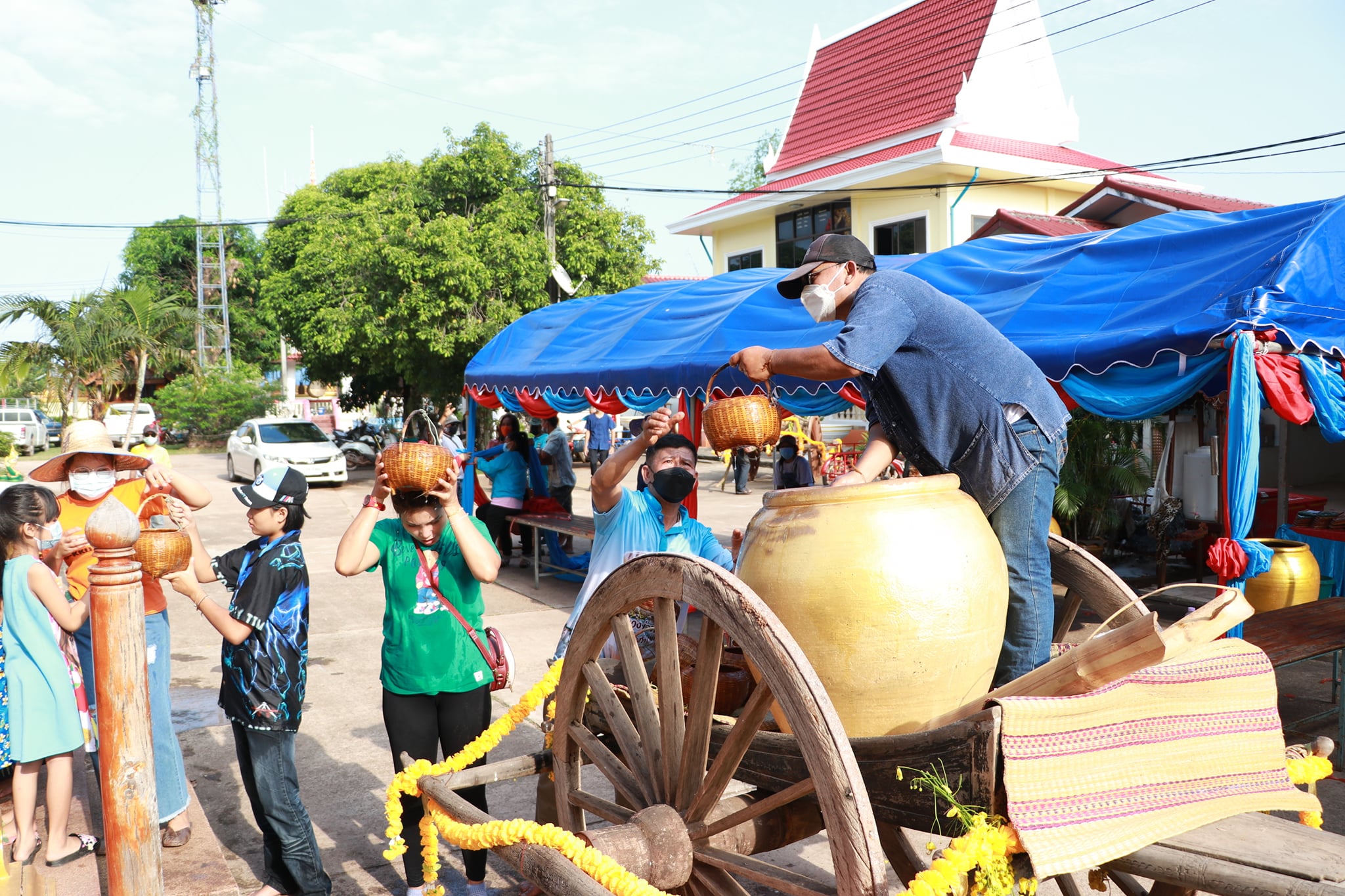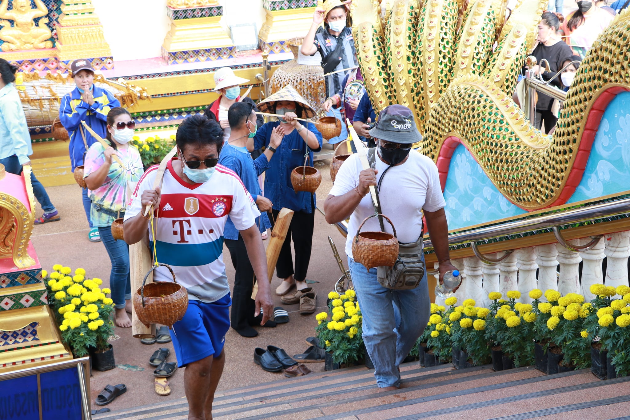 วันนี้ (19 เมษายน 65) มีพิธีรำบวงสรวงสักการะสิ่งศักดิ์สิทธิ์ และพิธีพราหมณ์สวดขอพรให้ชาวบึงกาฬ ตามด้วยขบวนแห่น้ำจั้นที่มีชาวบ้าน ผู้ใหญ่ รวมถึงเด็กได้ช่วยกันหาบน้ำจั้น เพื่อมาสรงน้ำหลวงพ่อพระใหญ่ หรือที่วัดโพธาราม อันประดิษฐานพระคู่บ้านคู่เมืองจังหวัดบึงกาฬ บ้านท่าไคร้ อำเภอเมืองบึงกาฬ จังหวัดบึงกาฬ อันเป็นศูนย์รวมจิตใจของพุทธศาสนิกชนทั้งชาวไทยและชาวลาว เป็นพระพุทธรูปที่มีความศักดิ์สิทธิ์ เพื่อคารวะขอจัดงานสรงน้ำหลวงพ่อพระใหญ่ในวันเช้าวันถัดไป ซึ่งภายในวัดมีนักท่องเที่ยวทั้งชาวไทยและชาติต่างให้ความสนใจ ทำให้เกิดการกระตุ้นเศรษฐกิจภายในชุมชน และสร้างความประทับใจสู่สายตาชาวโลก เป็นการส่งเสริมแหล่งท่องเที่ยวให้จังหวัดบึงกาฬต่อไป