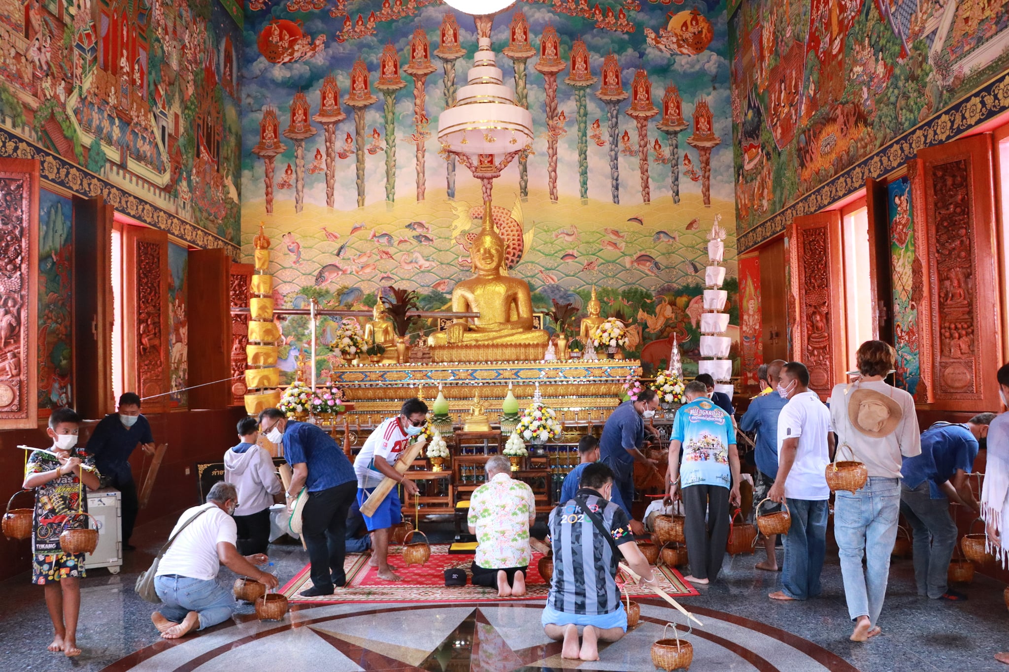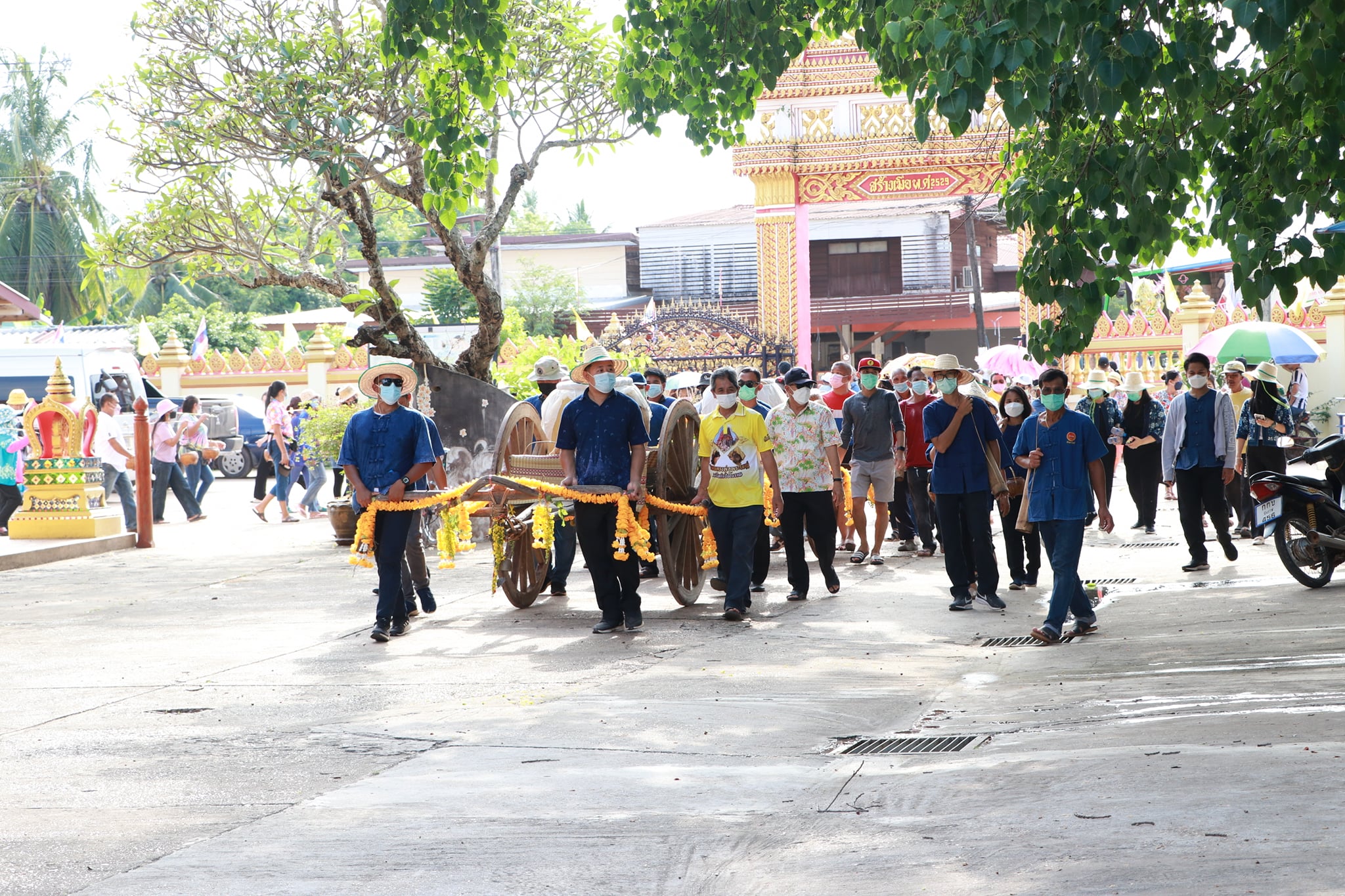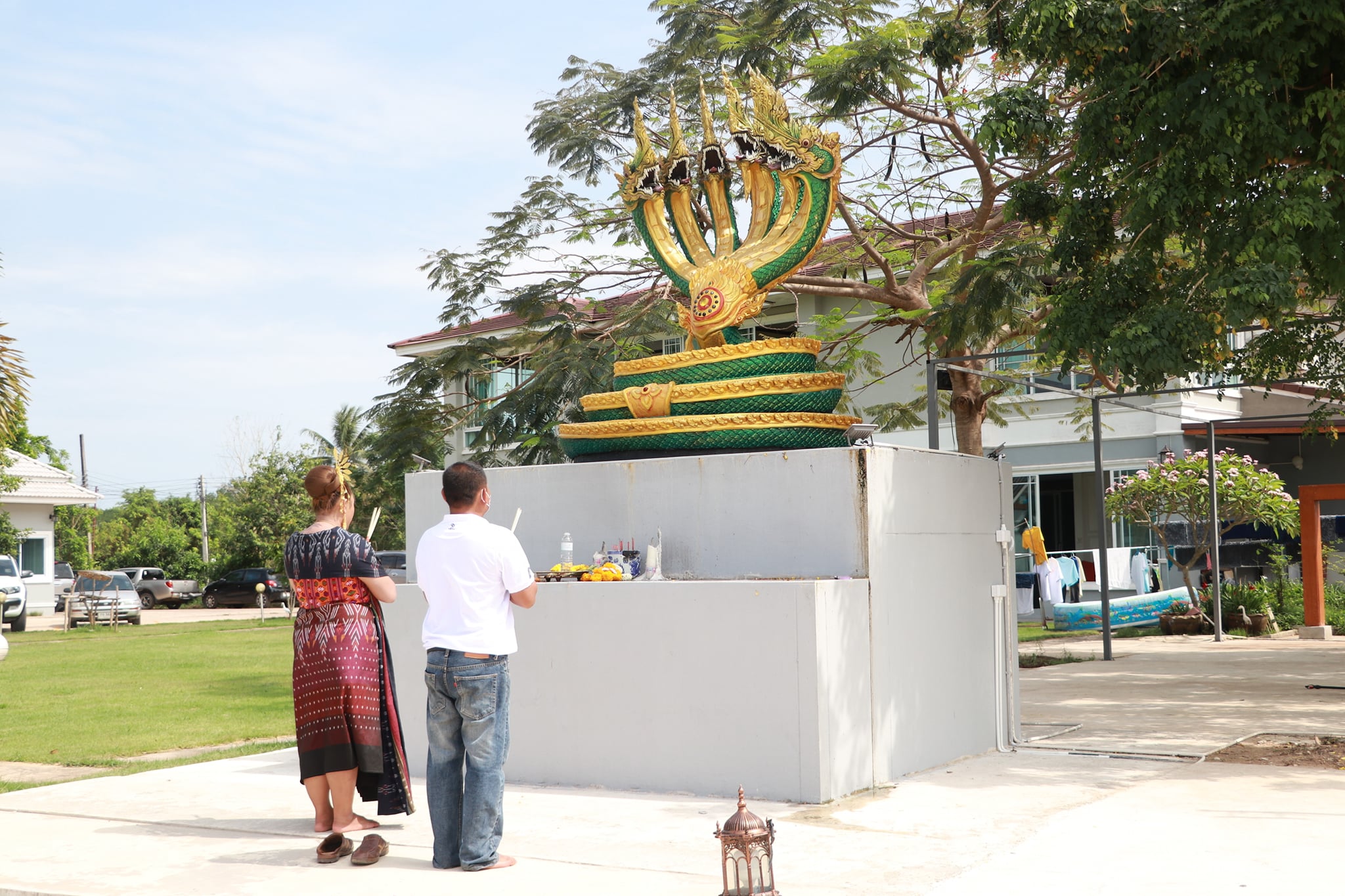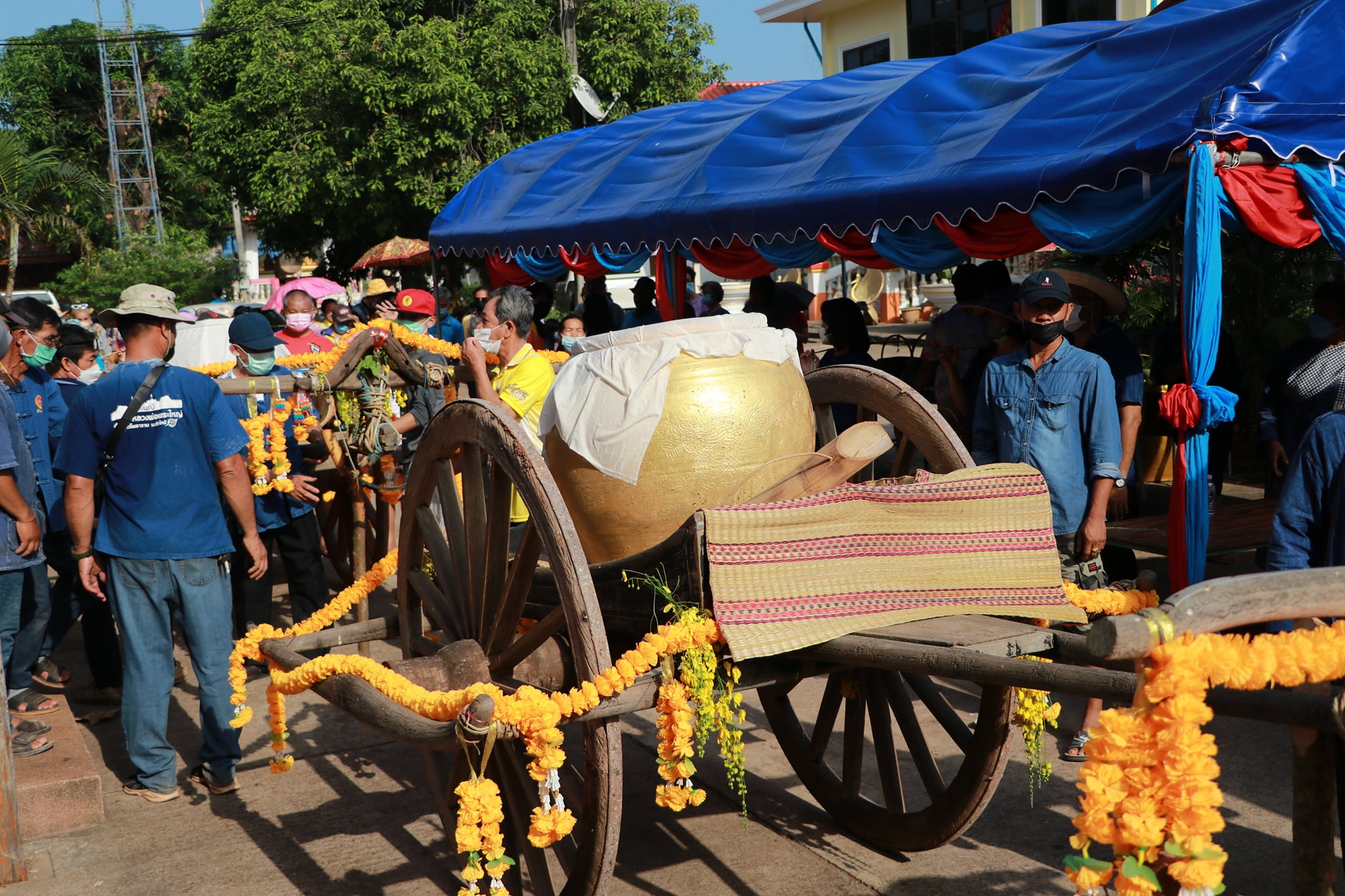 วันนี้ (19 เมษายน 65) มีพิธีรำบวงสรวงสักการะสิ่งศักดิ์สิทธิ์ และพิธีพราหมณ์สวดขอพรให้ชาวบึงกาฬ ตามด้วยขบวนแห่น้ำจั้นที่มีชาวบ้าน ผู้ใหญ่ รวมถึงเด็กได้ช่วยกันหาบน้ำจั้น เพื่อมาสรงน้ำหลวงพ่อพระใหญ่ หรือที่วัดโพธาราม อันประดิษฐานพระคู่บ้านคู่เมืองจังหวัดบึงกาฬ บ้านท่าไคร้ อำเภอเมืองบึงกาฬ จังหวัดบึงกาฬ อันเป็นศูนย์รวมจิตใจของพุทธศาสนิกชนทั้งชาวไทยและชาวลาว เป็นพระพุทธรูปที่มีความศักดิ์สิทธิ์ เพื่อคารวะขอจัดงานสรงน้ำหลวงพ่อพระใหญ่ในวันเช้าวันถัดไป ซึ่งภายในวัดมีนักท่องเที่ยวทั้งชาวไทยและชาติต่างให้ความสนใจ ทำให้เกิดการกระตุ้นเศรษฐกิจภายในชุมชน และสร้างความประทับใจสู่สายตาชาวโลก เป็นการส่งเสริมแหล่งท่องเที่ยวให้จังหวัดบึงกาฬต่อไป